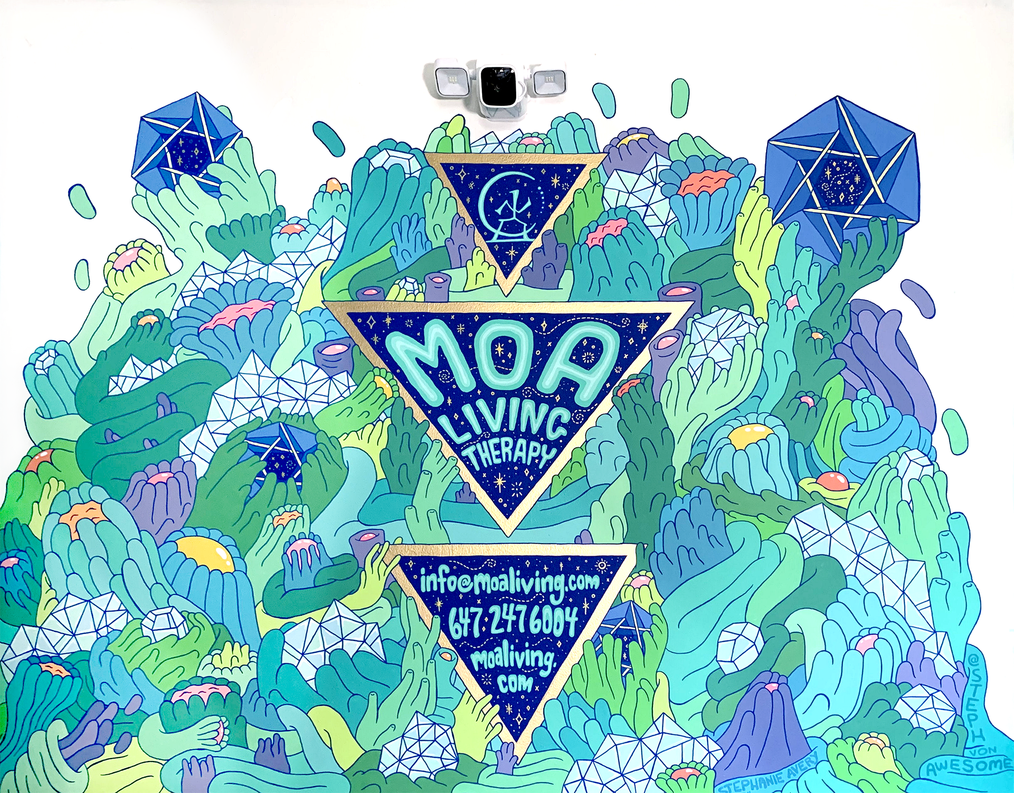 With her ongoing βAdHackβ series, Stephanie uses salvaged ads as her canvas, painting her own whimsical additions directly onto them to critique duplicitous aspects of consumer culture and the constructs of advertising. Using farce to undermine the pervasive power and influence they wield, she shifts and subverts ad content from being manipulative and insidious to hilarious and absurd, and transforms the viewer/advertiser relationship from predatorial to empowering.